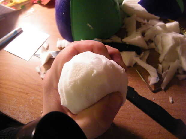 En la parte inferior de la bola dibujó una X pequeña que luego hice un corte poco profundo en él. Desea mantener el corte superficial por lo que la espuma abraza la herramienta de escritura. Luego usé mi Alen Key (o mondadientes) para meter un agujero de 2 pulgadas en la espuma.