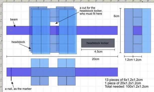 Así que miré a mi pequeño stock de material y este 1.2x1.2cm de sección cuadrada (1/2 pulgada), 100cm (40 pulgadas) largo trozo de madera llamar mi atención. He escogido Inkscape (excelente OSS 2D vectorial aplicación de dibujo) y había diseñado este gramil con este palo de madera, un clavo y blanco pegamento (también conocido como "pegamento para madera").