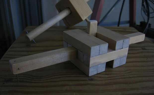 Ahhh! Lo sentimos, sólo sabe ver que necesita otra herramienta: un martillo normal! Usted no martilla un clavo con un martillo de madera:). Pero estoy seguro de que tiene un martillo de cabeza de hierro alrededor:).