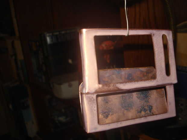 Dio el cuerpo terminado un par de capas de acrílico transparente spraypaint como una capa protectora - especialmente desde que tengo sudor extremadamente ácida ("" de acero inoxidable mi culo!) y realmente no me gusta el olor a cobre. Considera la superficie al principio de envejecimiento - si recuerdo correctamente sellado en un recipiente con algunos amoníaco durante la noche habría dado un resultado agradable - pero decidí contra él después de haber pasado tan mucho tiempo quitar pisadas y pulir la cosa...
