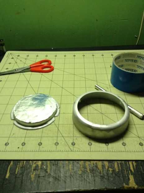 Tomar su lente y cubrir el pegamento y el papel con cinta adhesiva o conducto. Tome el lente y el anillo exterior y pintura de aerosol les cromo.