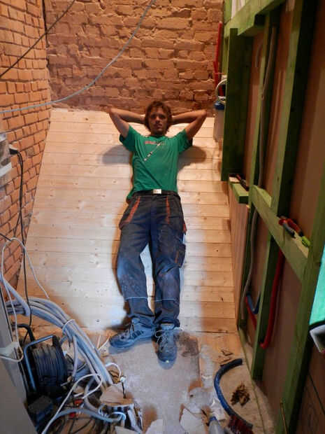 La mayor parte de la construcción se realizó con 2 X 4-s.