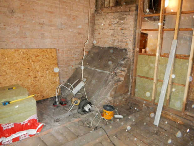 La pequeña forma impar en la esquina era una maravilla arquitectónica extraña. Bajo esta cosa es una escalera. No veo ningún uso real para esto para esconder en el armario parecía perfecto.