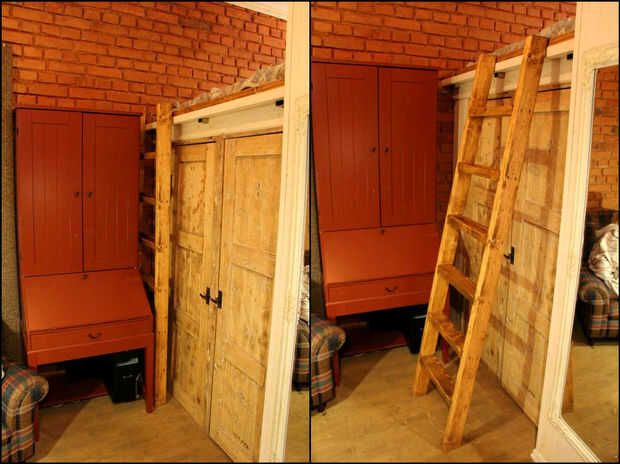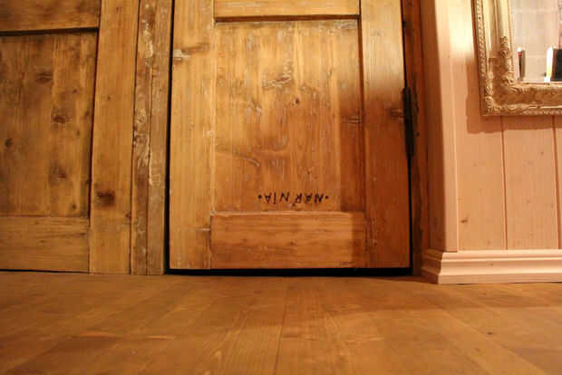 Historia de lado divertido - porque dos puertas habría sido absolutamente inútil que decidí cerrar la izquierda una permanentemente. Y ya que uno nunca podría ir a través de ella la hice en una puerta de entrada a Narnia (el país de las maravillas en armario). Pero por desgracia no creo que a través de muy bien. Al final tuve que voltear las puertas y el cartelito que terminó boca abajo en la parte inferior de la puerta derecha. Ahora podemos decir a nuestros amigos que cuando quieren entrar en narnia tienen que ir andando allí en sus manos.