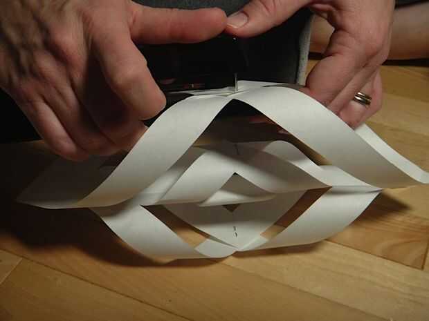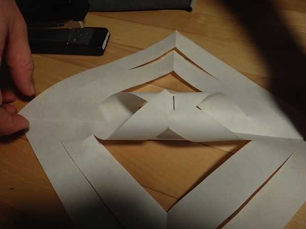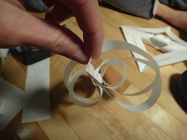 Dale la vuelta otra vez, etc. hasta que todos los pares de aletas están conectados y tiene una de las 6 unidades de la estrella final del copo de nieve.