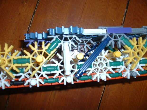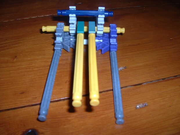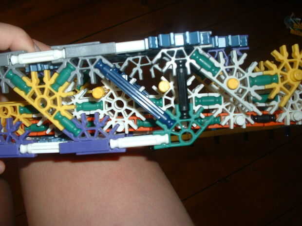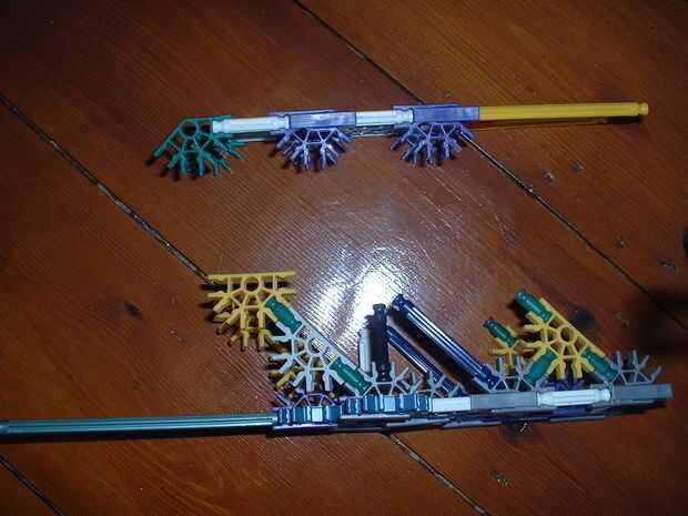 esta es el arma más poderosa de K'NEX creo que porque puede perforar 2 cerveza o COLA puede y destruir disco compacto fácilmente debido a la muy fuerte 4 gomas (yo uso 2 ligas diferentes) también incluye una gran revista para 5 K'NEX largo gris afila