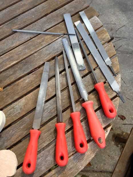 He usado un conjunto de archivos de la mano. Empecé con la más áspera y mi camino a los más finos.
