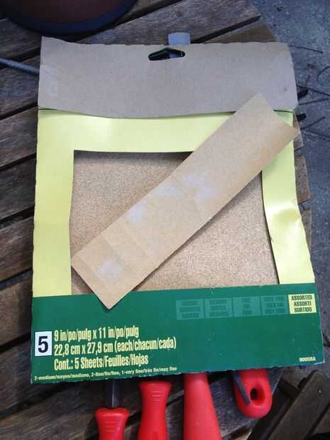 Rompí mi herramientas de mano para suavizar las imperfecciones, cantos y suavizar el acabado. Empecé con una escofina de mano. Esta es la herramienta más y saca más, por lo que se puede quita las imperfecciones más grandes. Sin embargo, la escofina puede fácilmente sacar las astillas de la madera contrachapada, así que usarlo con cuidado.