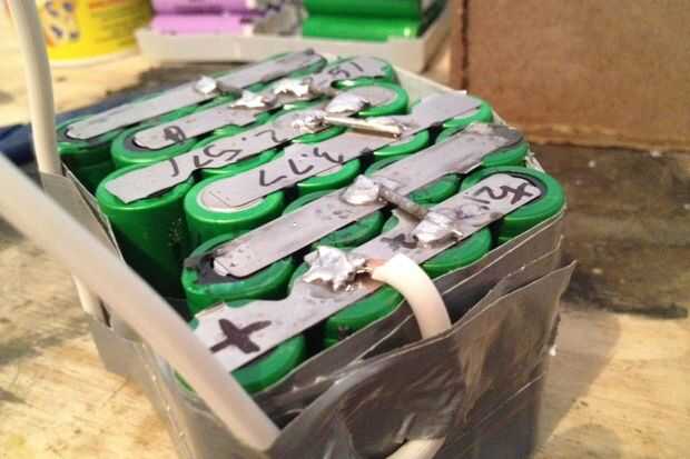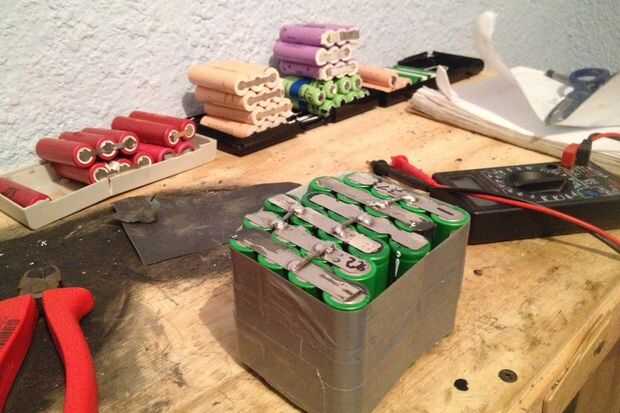 Al compilar un paquete de organizar las células en paralelo y serie grupos para conseguir los amperios y los voltios que necesita. Mayoría de las células de la laptop es de 2200mAH y puede descargarse con seguridad hasta 1C (2.2A para una hora).