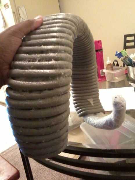 Este paso es hacer los cantos en el cuerno. Es Super importante no omitir este paso porque desea que su cuerno al aire luz. Esta cuerda de espuma es esencialmente su cuerno. Todo lo que hasta este punto era sólo para formar un molde. Para este paso tomé mis cortadores de alambre y había quitado el cuerno de mi base de planchar así que pude girar el cordón alrededor más fácil.