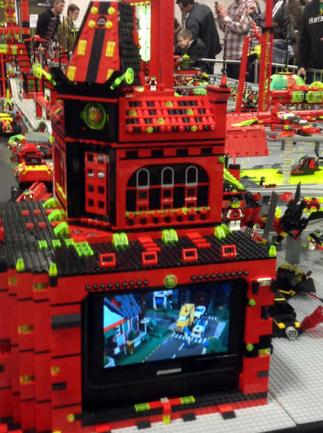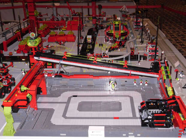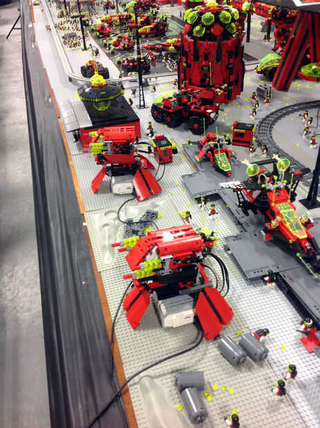 Tenemos movimiento en todas partes que podemos en el diseño. Tenemos un tren alrededor de la base, tenemos un monorraíl movimiento en pista elevada. Tenemos platos de radar spinning y ejercicios. Contamos con un sistema de centinelas de pistola que rastrear el movimiento y "fuego" en el movimiento. El movimiento más tienes más grande el awes. Todo todo lo que hacemos con el movimiento se realiza con los diferentes sistemas de Lego, incluyendo los kits de robots Mindstorms. También hemos creado un teatro de chino M-Tron que muestra dejar películas de Lego de marco en su pantalla.