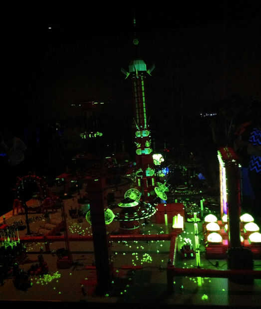 Las luces sólo tiene que añadir en ese algo extra. Cada año disponemos en Brickworld Chicago donde se celebra un Festival de las luces que se apagan las luces de la sala principal y todas las creaciones se encienden por sí mismas. Como un super bono, el florecimiento de neón transparente verde bajo luz UV. Contamos con luces UV en las creaciones y en el oscuro proyecto M-Tron brilla en gloria luz negra.