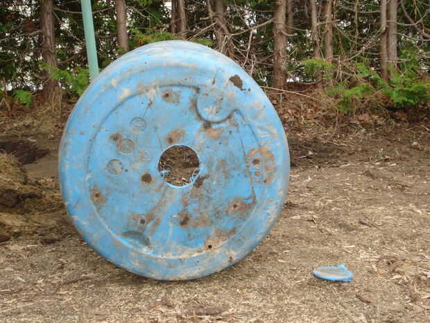 Luego corte un orificio circular en lo que será la parte superior de su compostador. Corté un agujero de 4 pulgadas en mi porque decidí usar un 4 pulgadas en tubería de pvc de diámetro (ID) como el puerto de acceso para mi compostador. Es bueno tener un agujero lo suficientemente grande como para permitir que los desechos de perro caiga dentro del vaso sin necesidad de una vara para empujar. El pvc de 4 pulgadas ID encaja perfectamente en el agujero de 4 pulgadas sin el peligro de caer. He podido encontrar un desperdicio corta trozo de tubería que se dirigía hacia el contenedor de basura.
