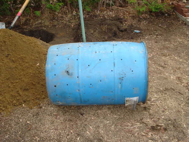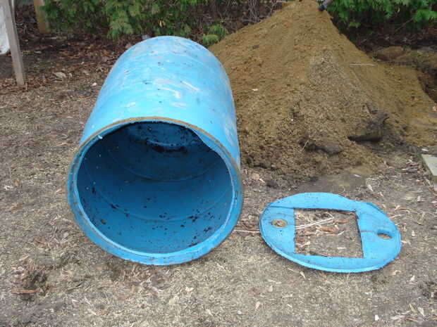 Si está utilizando un barril necesita cortar la parte superior. El extremo abierto se convertirá en la parte inferior de la compster. Esto aumenta la superficie expuesta a la tierra y permitir que el agua de lluvia drene fácilmente.