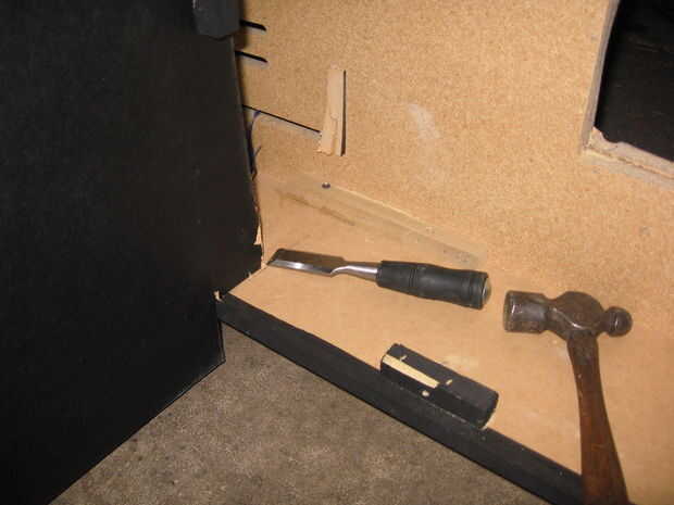 También usé este martillo y cincel técnica para eliminar innecesarios montaje bloques de otras localidades de marco. Utilice un cincel barato en caso de que aciertes las grapas que se utilizan para asegurar los bloques. Las grapas que sobresalgan se pueden tirar con un par de alicates doblados de la nariz. Guardar los bloques de montaje más grandes pues vienen prácticos para madera.