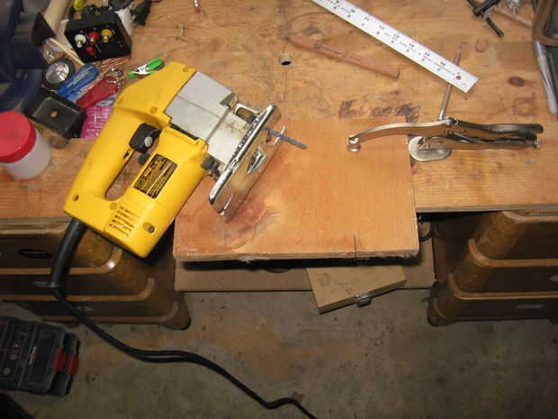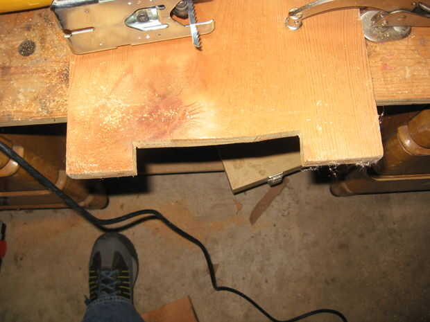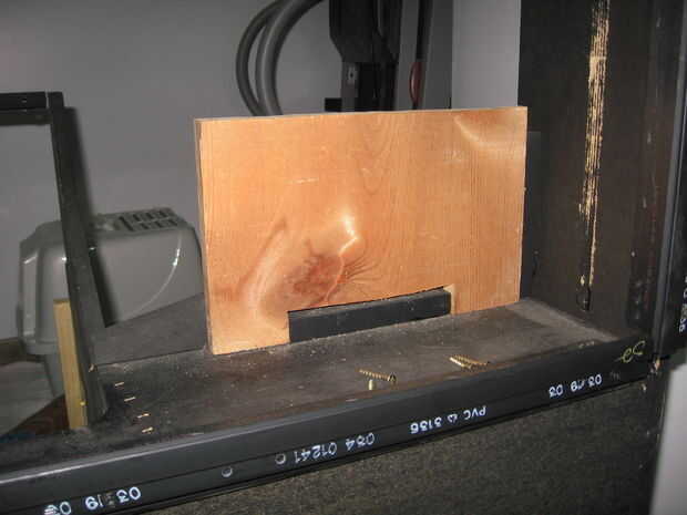 Con esta dimensión en mano corté un pedazo de madera a la longitud adecuada. Siguiente una muesca tendría que crea que todo el bloque de montaje. Considera retirar este bloque pero pensé que el intento de hacerlo podría dañar la integridad estructural del chasis. Así que coloca el soporte en su lugar y trazó los bordes del bloque de montaje. Luego mide la profundidad del bloque y utilizar esta información y una regla para poner hacia fuera de la muesca. Con eso logra cortar la muesca con una sierra de calar, coloque en su lugar y había asegurada con tornillos para madera cabeza fresados.