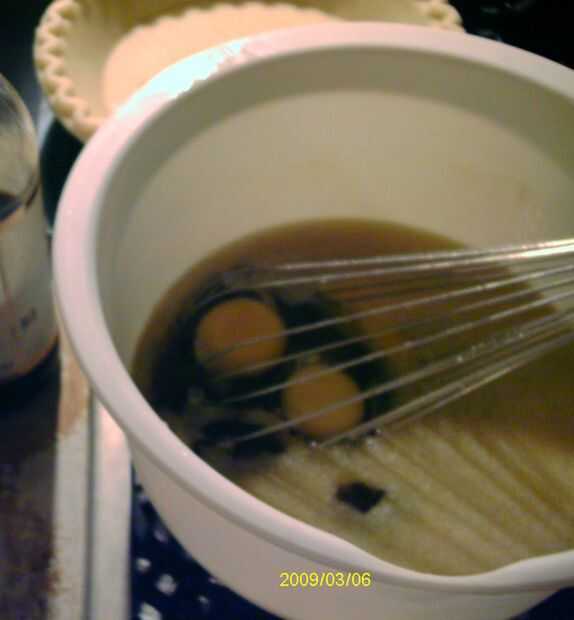 Asegúrese de que se enfría la margarina y batir, el azúcar y el jarabe de maíz oscuro hasta que el azúcar se disuelva.
