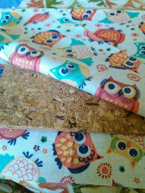 Todo lo que necesita hacer es voltear la tela con la parte trasera de la impresión hacia arriba. Lay también asegura el tablero del corcho en la tela (ya utilicé la Plaza acercaba la Junta hasta el pliegue) tienen un poco tela extra en los lados así.