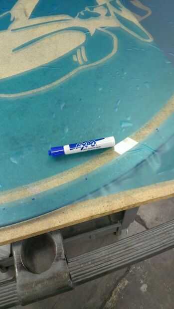 Había medido mi diseño en el cristal y utilizar un seco borra el marcador para crear líneas de demarcación, por lo que sería más fácil alinear el diseño después de que peló la plantilla desde el respaldo.