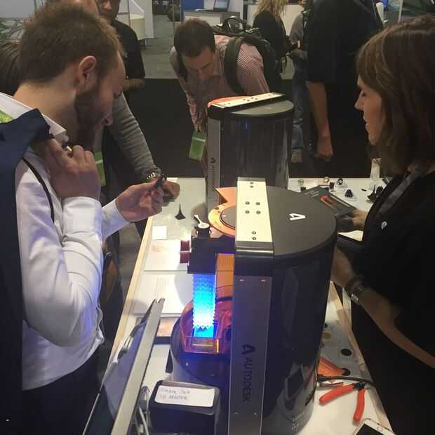 Pop que la cámara en el aire y mira hacia abajo en un intercambio de conocimiento. Esto funciona especialmente si hay una multitud delante de usted, o en una de las fotos anteriores, una impresora 3D. Obtener el nivel de los ojos con pantallas para dar el producto una presencia más potente.