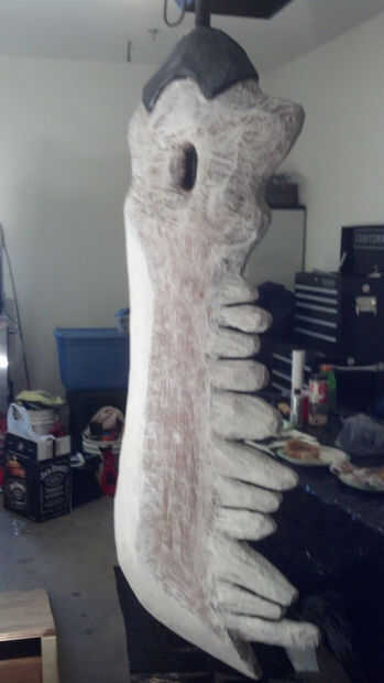 Me colgó la hoja y comencé con una imprimación gris antes de agregar el satén negro al agujero y empuñadura. El resto de la hoja fue base en satén marfil pintura en aerosol.