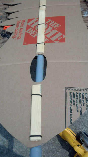 Abrazaderas de plástico y cinta adhesiva se usaron para asegurar la plantilla para el marco. Una tira delgada de 1/4" de madera se utilizó en el lado opuesto de la cartulina para que no se tiraría los lazos zip a través de la cartulina cuando está bajo estrés.