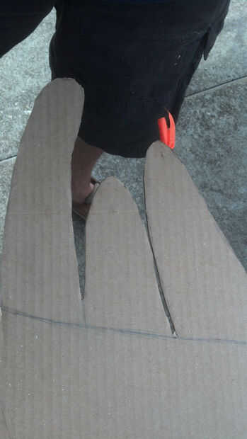 Una cosa que noté acerca de los detalles más finos (los dientes del dragón) fue que podía flex bajo el peso de la espuma sin endurecer. Yo les había reforzado con alambre de paisaje banderas de la marca. Estas en la corrugación del cartón. Esto les da más resistencia a la flexión como la espuma se agrega.