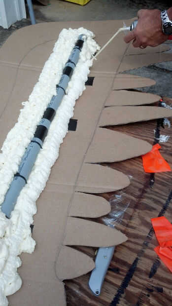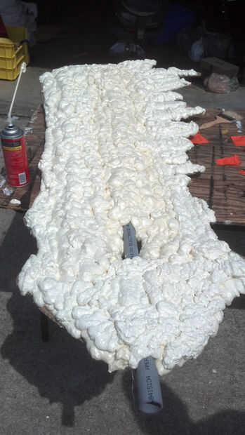 Necesitaba sobre 8-10 latas de expansión de espuma para esta espada. No puedo estar seguro de cuánto será necesario, siempre comprar y devolver las porciones no utilizadas. Una vez iniciado, no puede pausar agregar espuma a un lado. La segunda parte no se puede hacer hasta este lado se seca.