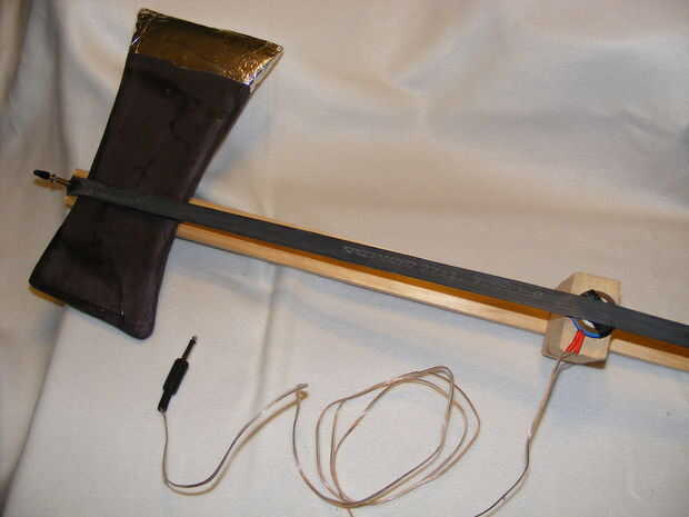 A ello se suma un pastilla piezoeléctrica simple y amplificar la señal a transmitir a los más allá de la distancia «He aquí el gran bajo de hacha de la justicia, haga uno para difundir el surco, siempre y cuando sea no rap... disco tal vez demasiado»