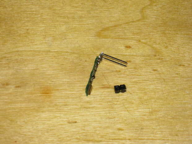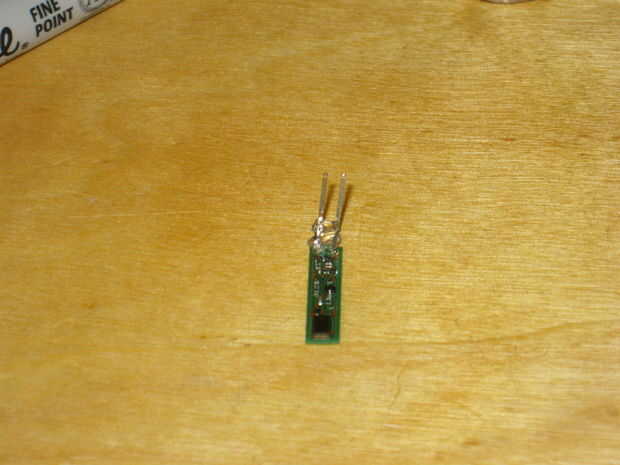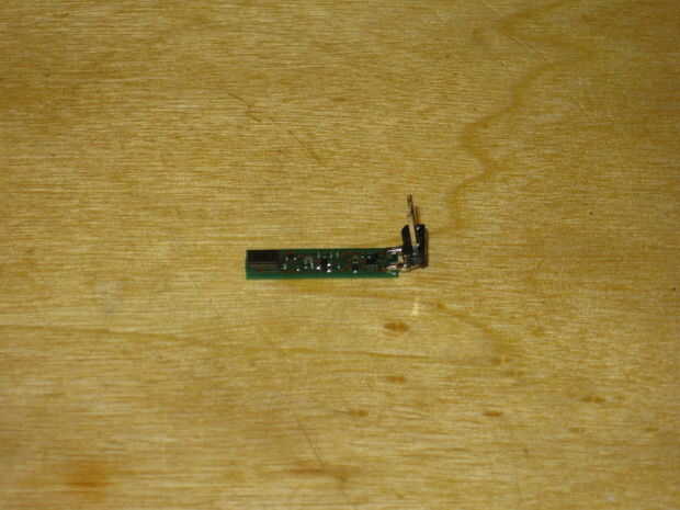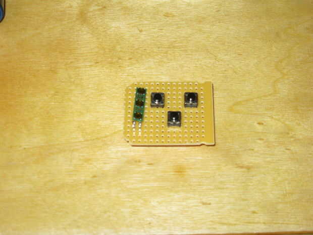 Para ayudar a hacer más fácil conectar el circuito a la perfboard, usaremos un par de cabeceras de ángulo recto soldadas a los puntos de tierra y control. Después de juntar la cabecera pegarlos bien a la Junta. Los rastros SMD son muy pequeños y se corte el tablero muy fácilmente. Ahora quitamos el separador para el circuito de sentarse tan cerca del perfboard como sea posible.
