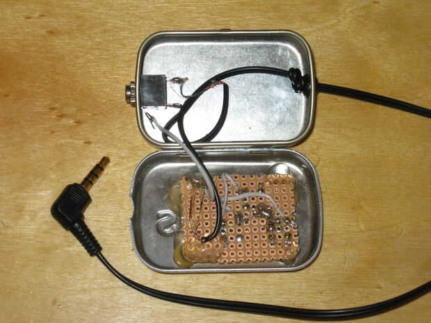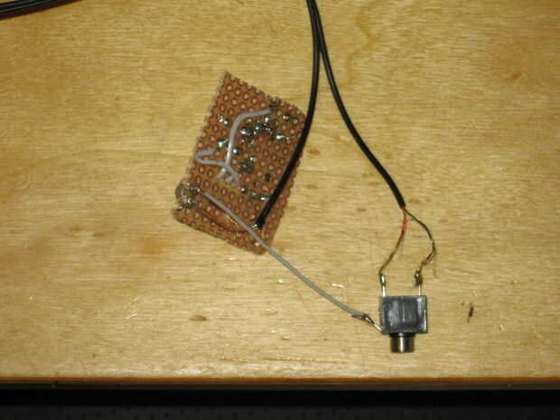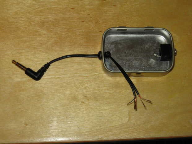 Ahora podemos montar el 1/8 estéreo y pegar la tabla en la parte superior. Cerca de todo y tu listo para rock con sus auriculares favoritos.