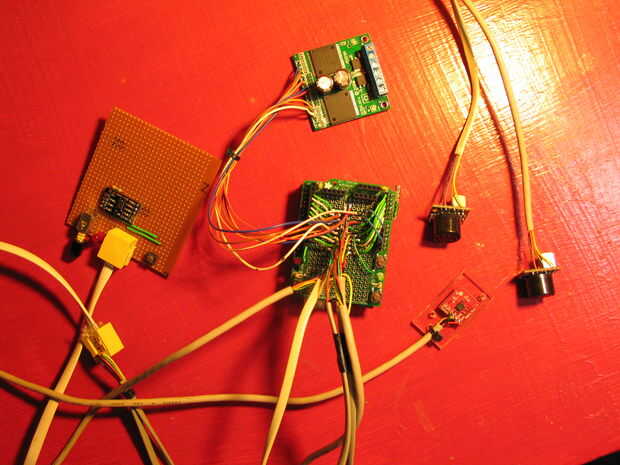 Usé 6 cable de teléfono (RJ11) y tomas de corriente para conectar el regulador de mano para el Arduino. Planeo hacer esto para las conexiones del Telémetros. Utilicé cable 16AWG para la batería y las conexiones del motor.