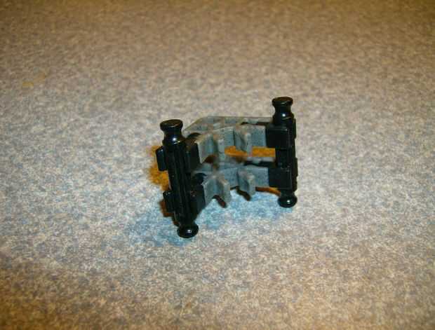 un kunai pequeño, bien construido y bastante durable.Paso 1: mango nueve gris gris conectores en dos barras de longitud amarilla, dirección alternativa para mejor resistencia.tres conectores de copo de nieve de dos conectores de vestido blanco, esta