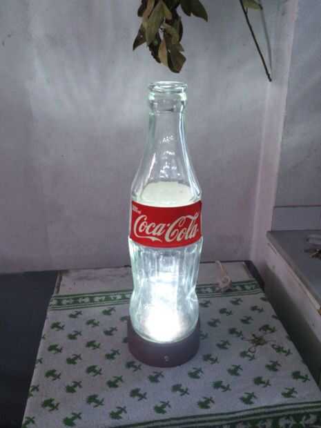La construcción de una lámpara de este tipo es bastante simple, sólo necesitas una base con una luz en el centro de la misma, la luz brilla dentro de la botella por lo que se refleja en el agua y el colorante, haciendo que la botella entera para brillar como se irradió.