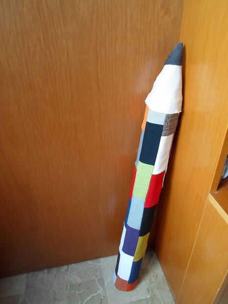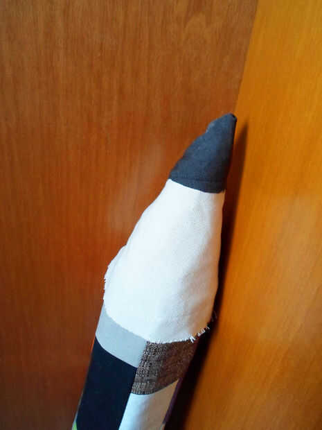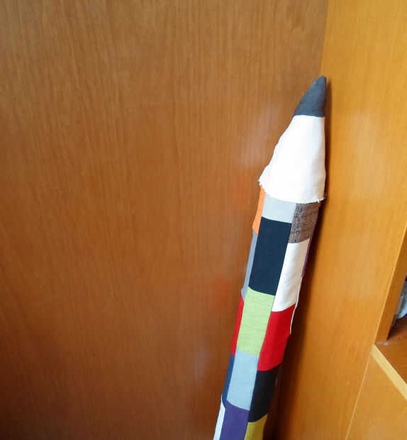Ya tenía la idea de crear un lápiz enorme en forma de exclusión del proyecto porque el que tenía era viejo y feo. La única manera de hacerlo era coser así, me tomó un tiempo y está lejos de ser perfecto, pero finalmente lo hice! Debo agradecer a mi madre por su paciencia en la enseñanza y ayudarme como hacerlo :)