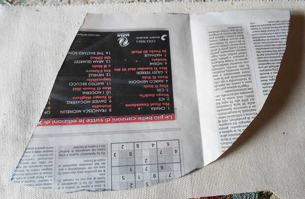 Coloque su patrón de papel sobre la tela beige y trazar su contorno, guardando un poco más grande que el tamaño real. Hice alrededor de 1cm (0,39 pulgadas) más grandes en cada lado.