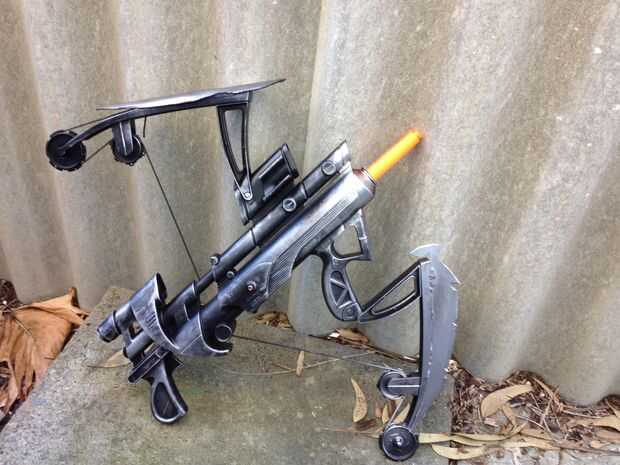 Otra vez como la mayoría de mis estructuras, porque no hemos mucho espacio o equipo está un poco en el lado chungo y no manera de cerca una réplica real... más todavía quería usarlo como un Nerf Bow.