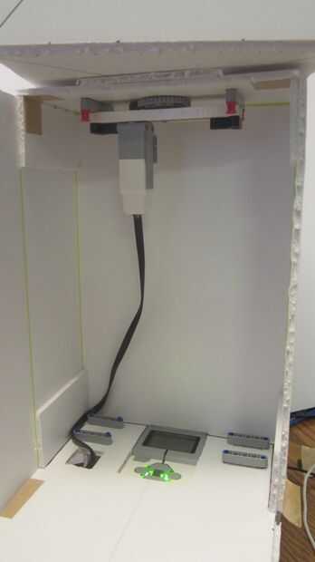 Alambre encima de la cabeza! Este es probablemente el paso más simple, lo que estamos haciendo es correr y conectando un cable entre el motor superior de la cabeza hasta el ladrillo de EV3.