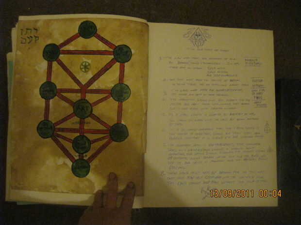 la espina dorsal tiene 5 pentogram colgantes en plata (cortado la punta de la knecklace con unas tijeras)