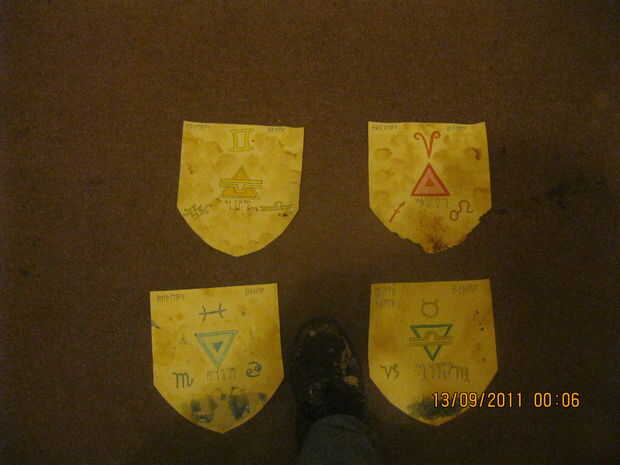 tallada la pentogram con una cuchilla afilada y luego pintada el oro zonas talladas