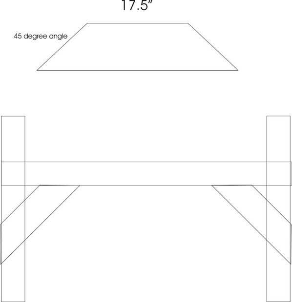 Vas a cortar la forma trapezoide por debajo de los tallos de 2 x 3. Los ángulos son ángulos de 45 grados.