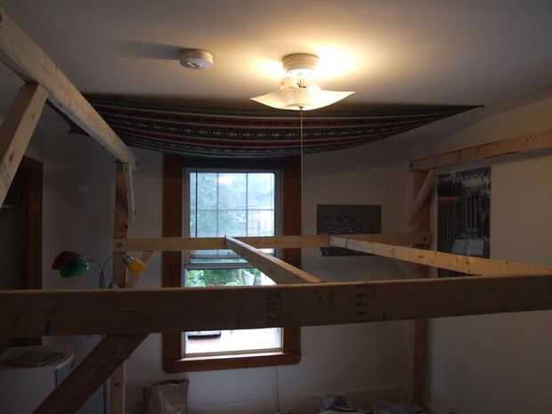 La mejor manera que encontré para poner estos tallos es alinear el tallo para que quede al ras con el pedúnculo de la Cruz. Un amigo realmente ayuda con el proceso de alineación, pero es solo posible. (Lo hice toda la construcción loft por mi solitario, con la excepción de disputas la madera por las escaleras. Mi vecino Diego me ayudó con eso. Más sobre Diego más adelante...)
