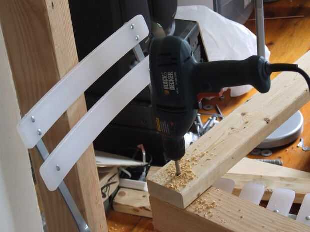 En primer lugar, yo uno de mis tallos con la parte superior de un tronco alineado. Utiliza la cinta métrica para escoger el centro de la superposición y taladrar un orificio de 1/2" a través de ambos. Me gustaría pegar dos piezas que deben alinearse en la parte superior entre si cuando taladro, ya que no confío en mis habilidades de medición, que son el jardín de la infancia.