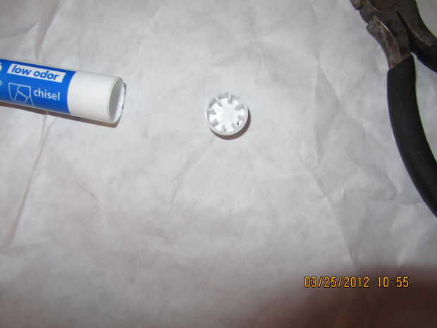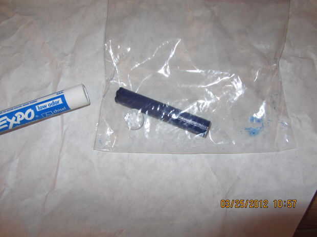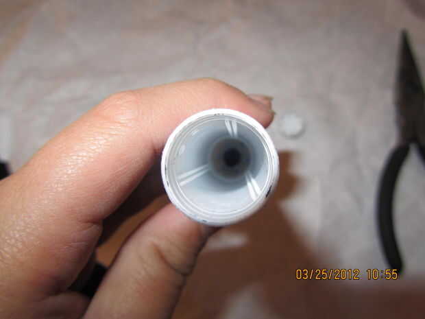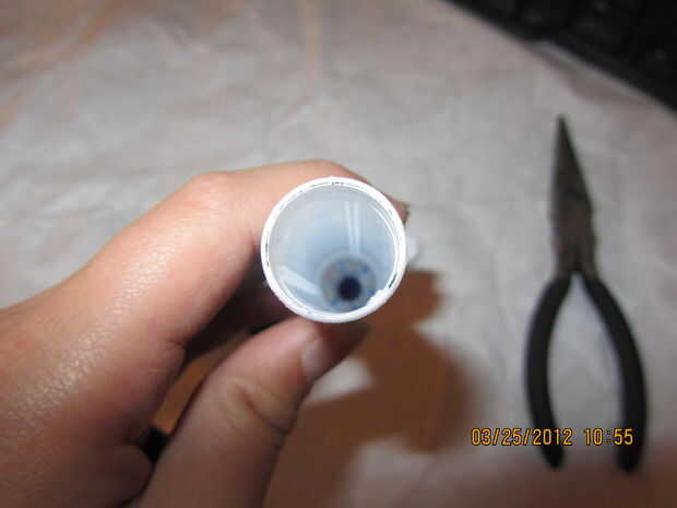 Tome sus alicates y tire suavemente de la tapa del extremo, esto puede tomar algunos de fuerza, pero no romperla. Podrá ver el cartucho de tinta, retírela y coloque las dos piezas en una bolsa zip-lock.