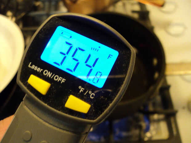 Calentar el aceite hasta aproximadamente 350 ° F.