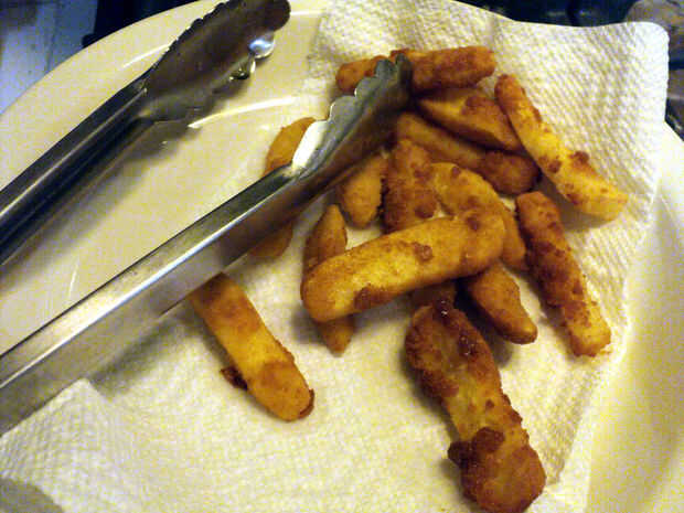 Cuando se hace a su gusto, retire las piezas y escurrir sobre toallas de papel.