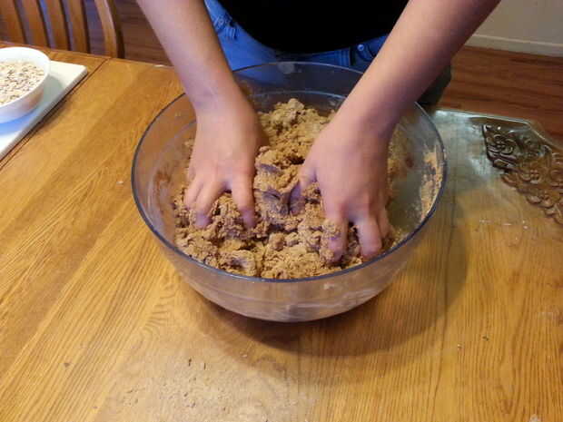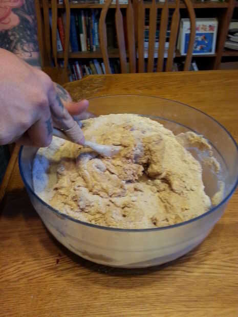 Mezclar los ingredientes juntos mojados y secos. Me gusta usar mis manos para asegurar una buena mezcla.