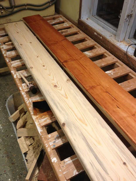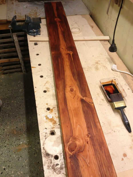 Para proteger la madera y conseguir un color que usé tinte roble. La textura de madera realmente sale.