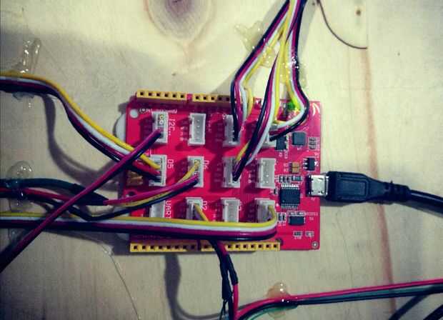 Hay 4 tiras de Led y 3 Servos, así como un botón de Grove - relé, Grove.