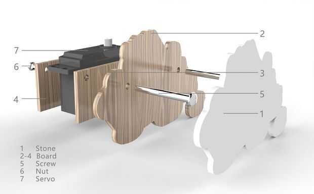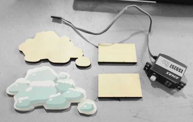 3. Fijar los palos de signo de carretera en 1 en los servos en 2.